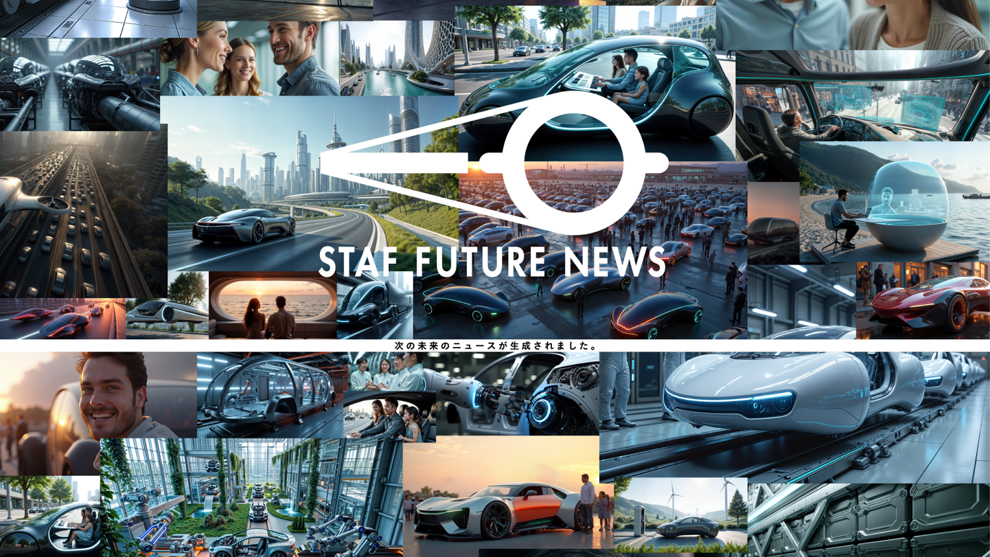 そこで、「未来はこうなるかも」といった複数の未来像を見せたほうが、多様な立場の人たちに響くのではないかと思い、できるだけ幅広い未来像をビジュアル化することを意識し企画を進めました。その中のひとつが「STAF FUTURE NEWS」です。STAF技術が浸透した未来のモビリティ社会の可能性を、ニュース形式で“ちょっと先の驚きの未来像”として伝えることで、リアリティと遊び心の両方を感じてもらえるのではないかと思いました。