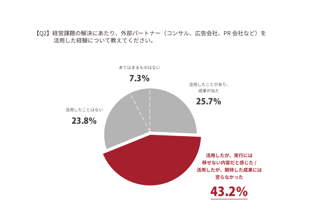 外部企業の支援は、結果机上の空論や期待した成果には至らないと答えた方は約40%も感じている。