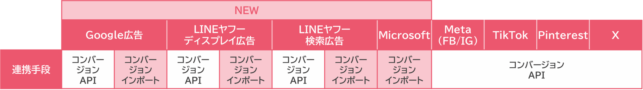 今回、「ADK-TSUNAGI」に“CAPiCO”を追加連携することで、コンバージョン計測を行う媒体の選定や、複数媒体に広告配信をする際の設定にさらなる選択肢が増え、クライアント企業の課題に応じて、より柔軟にソリューションを提供することが可能になりました。 従来の「ADK-TSUNAGI」では、データの連携手段がコンバージョンAPIのみでしたが、Yahoo!検索やMicrosoftにて、コンバージョンインポートという技術でコンバージョンデータを媒体に送信できるようアップデートしました。